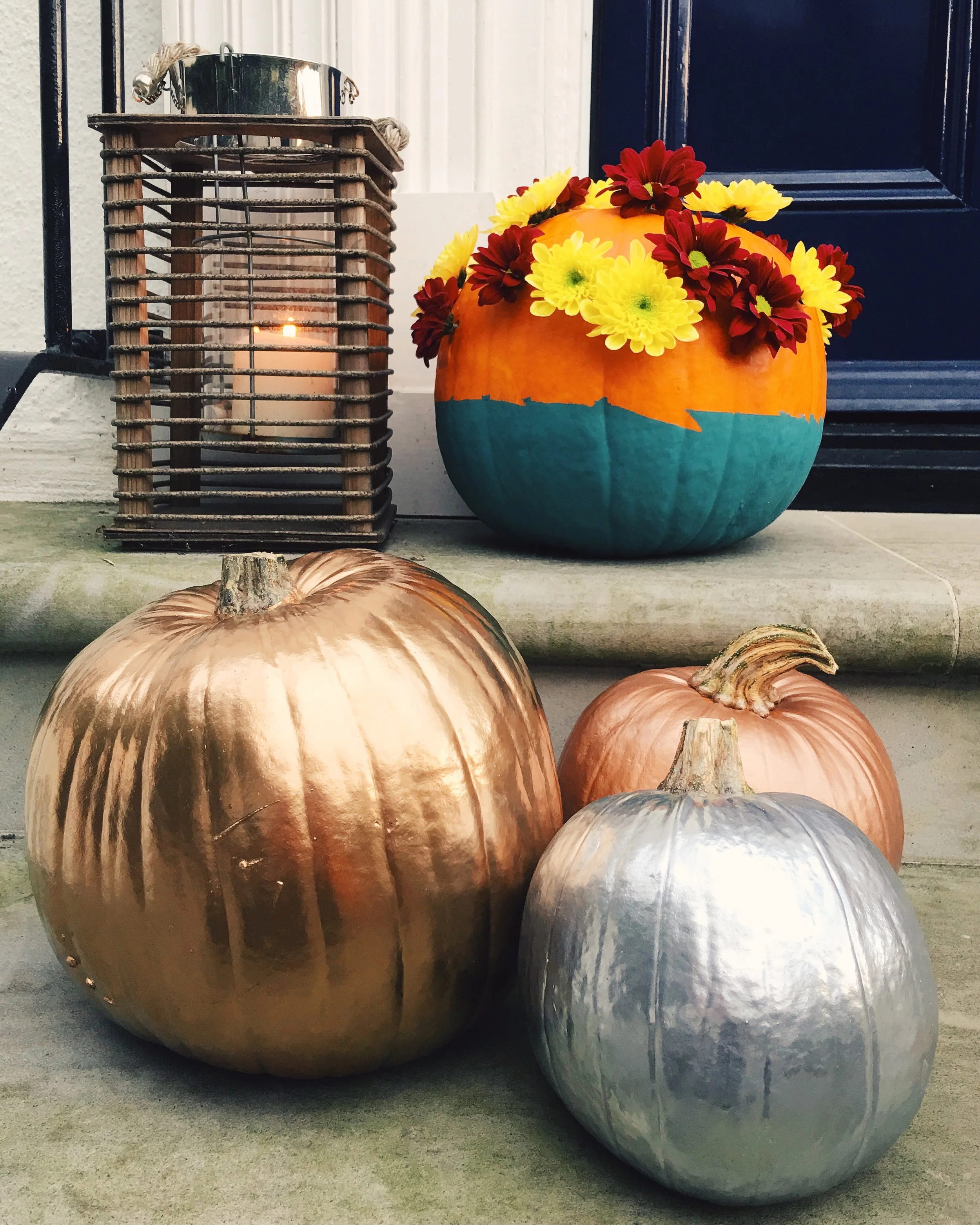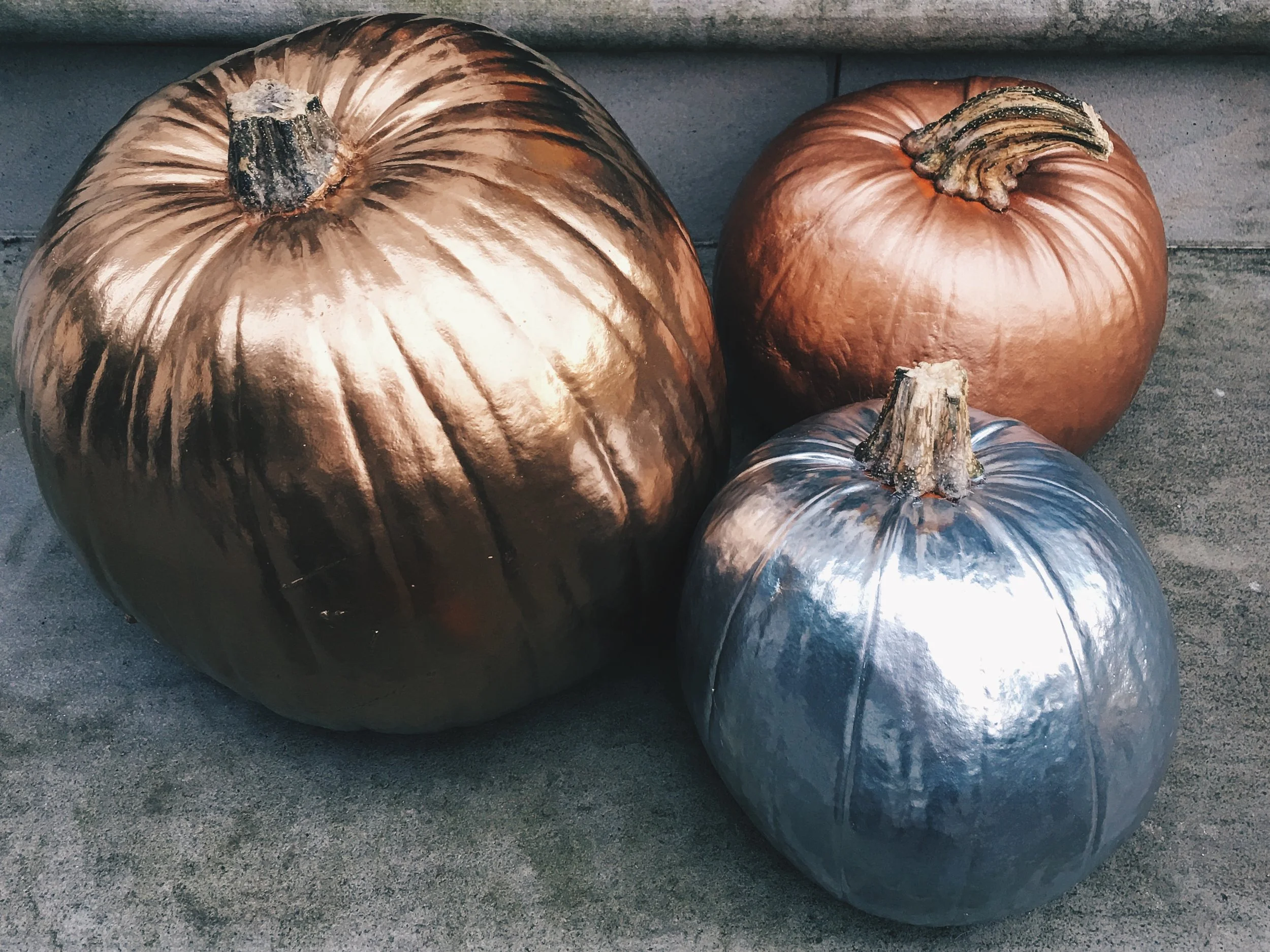 I couldn't ignore the huge trend in metallics that still rules in interiors, so decided to give a few of my pumpkins a good coating of copper, silver and gold spray paint.