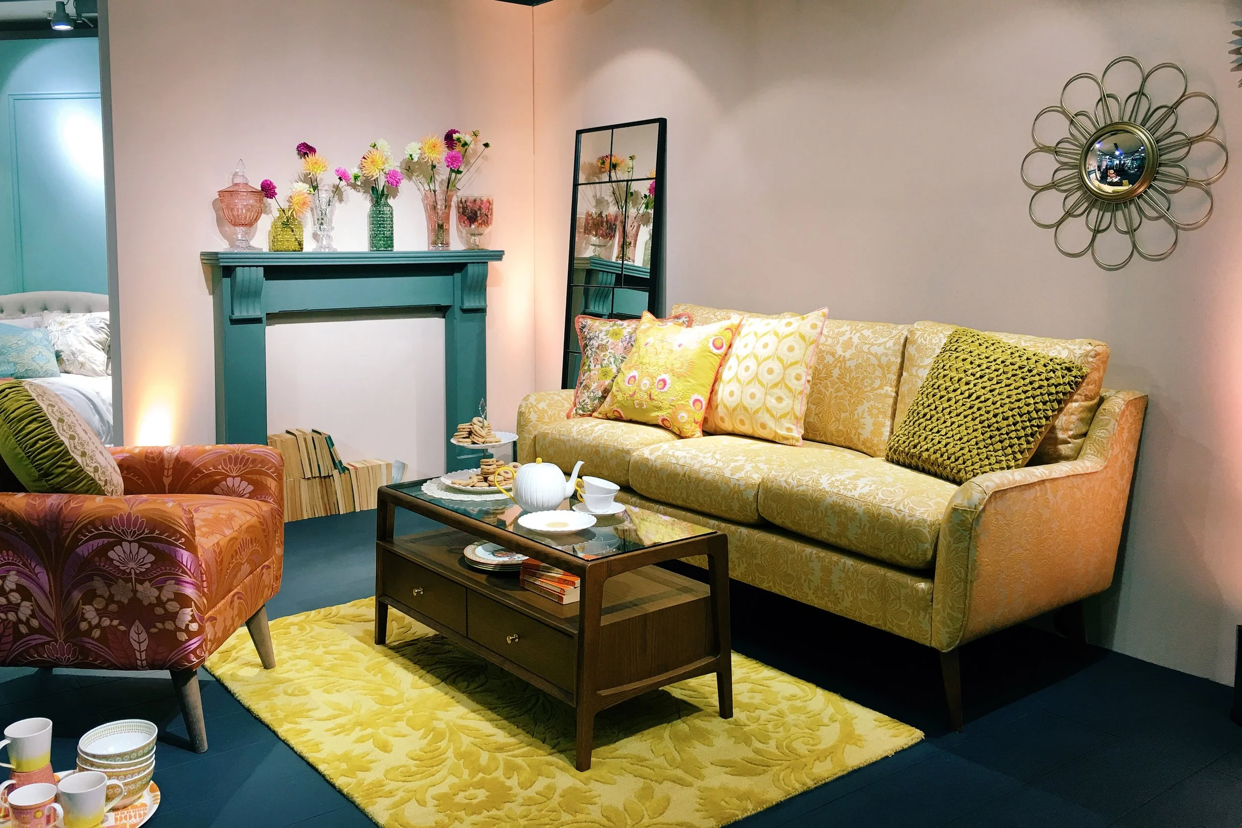 My absolute pick of the bunch was 'Luxe Revival' collection by Marks and Spencer. I absolutely loved the brass base and legs on the chairs and sofas, and spent a few days after the show cursing my own perfectly fine sofa at home that doesn't need replacing. I will be purchasing the Stella 4 Light Chandelier which at £129 is an absolute steal for a show-stopping light. I'll also be stocking up on a blush pink triangle embroidered cushion and the abstract teal cushion in place of a new sofa I guess! Top of the lust-list went to the Carraway Sideboard. Again, if I needed a sideboard, that would be it!