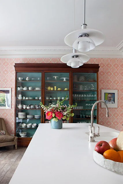 If you are not taken with any wallpaper, try painting the inside of a cabinet a fabulous colour like teal. How great do the items in this cabinet look against a teal backdrop? And how well does the colour work alongside the dark wood?
