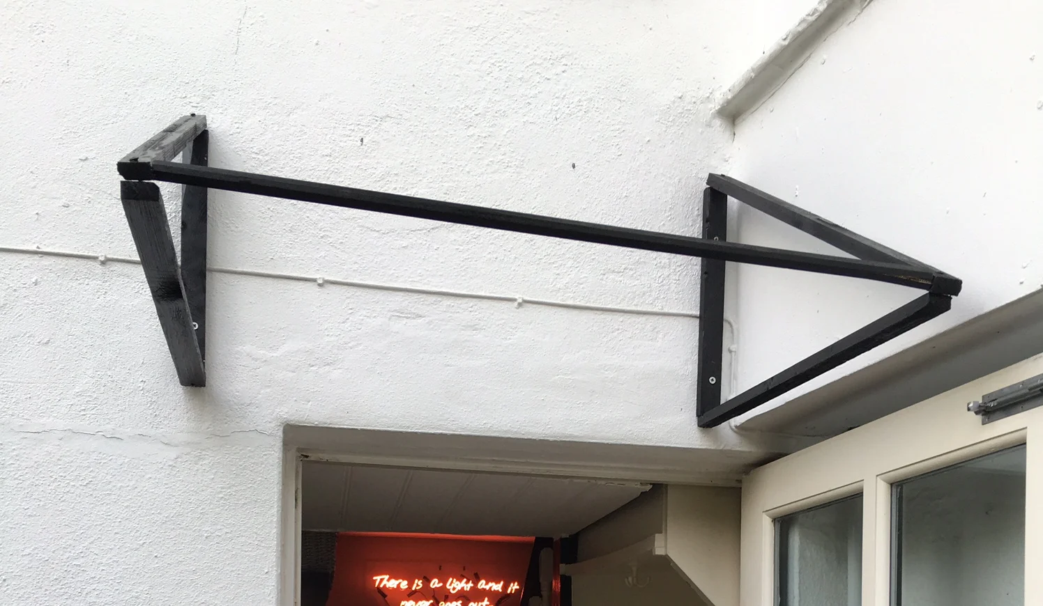 I attached both the triangle supports above my back door with wall plugs and screws suitable for brick, then added an extra piece of wood to support the awning at the front: