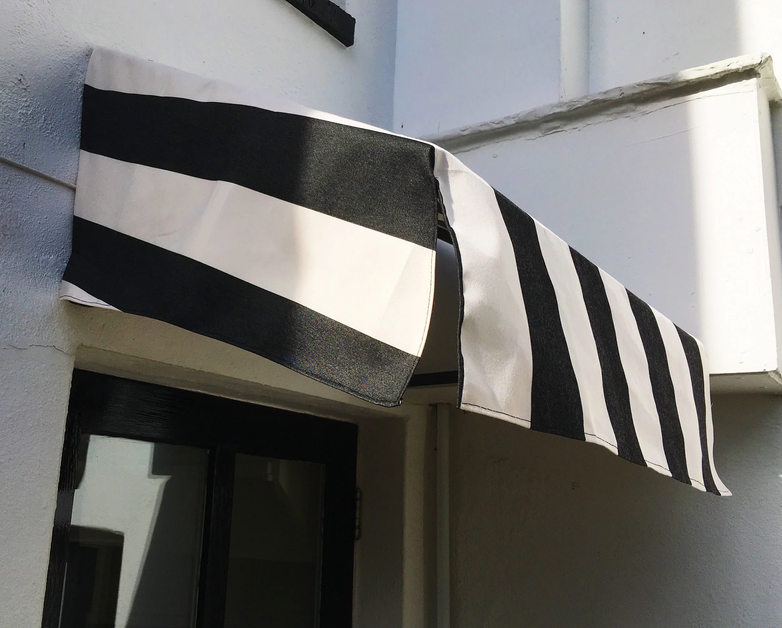 I had previously worked in the prime-property-porn area of Kensington in London. On my lunch break I often took a stroll down some of the most expensive streets just to ogle the houses. Many of the homes had little striped canopies over the front doors or windows, which I recently found out was called 'awning'. I think they are more an American thing on houses over there than here in Britain, but they just look so cute. I decided I wanted to Kensington-up my Essex home, so set about DIY-ing some awning.