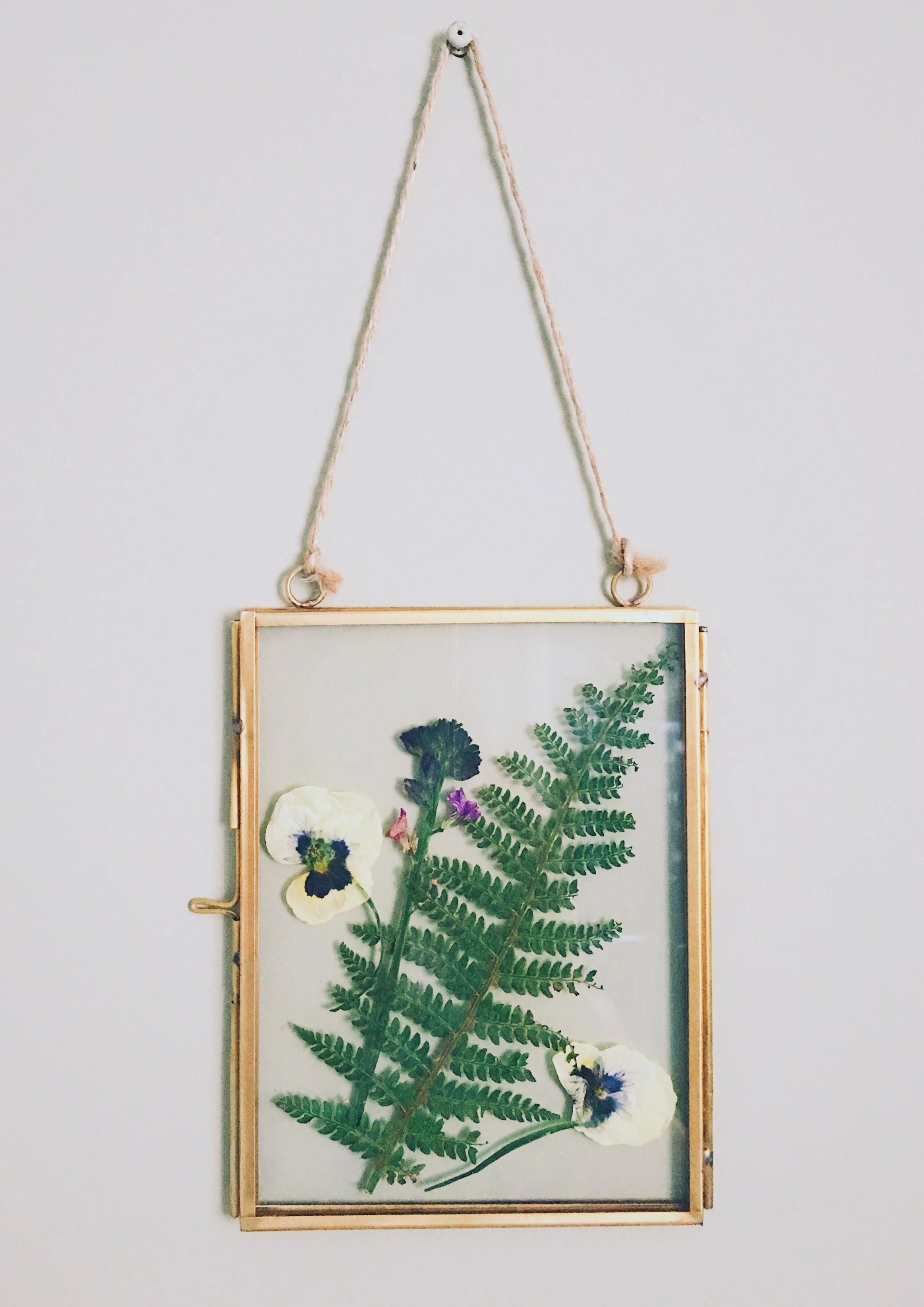 I brought one of those cute brass and glass hanging frames in the January sales and I wanted to put pressed flowers inside. I decided to give the iron trick a go, and it totally worked!