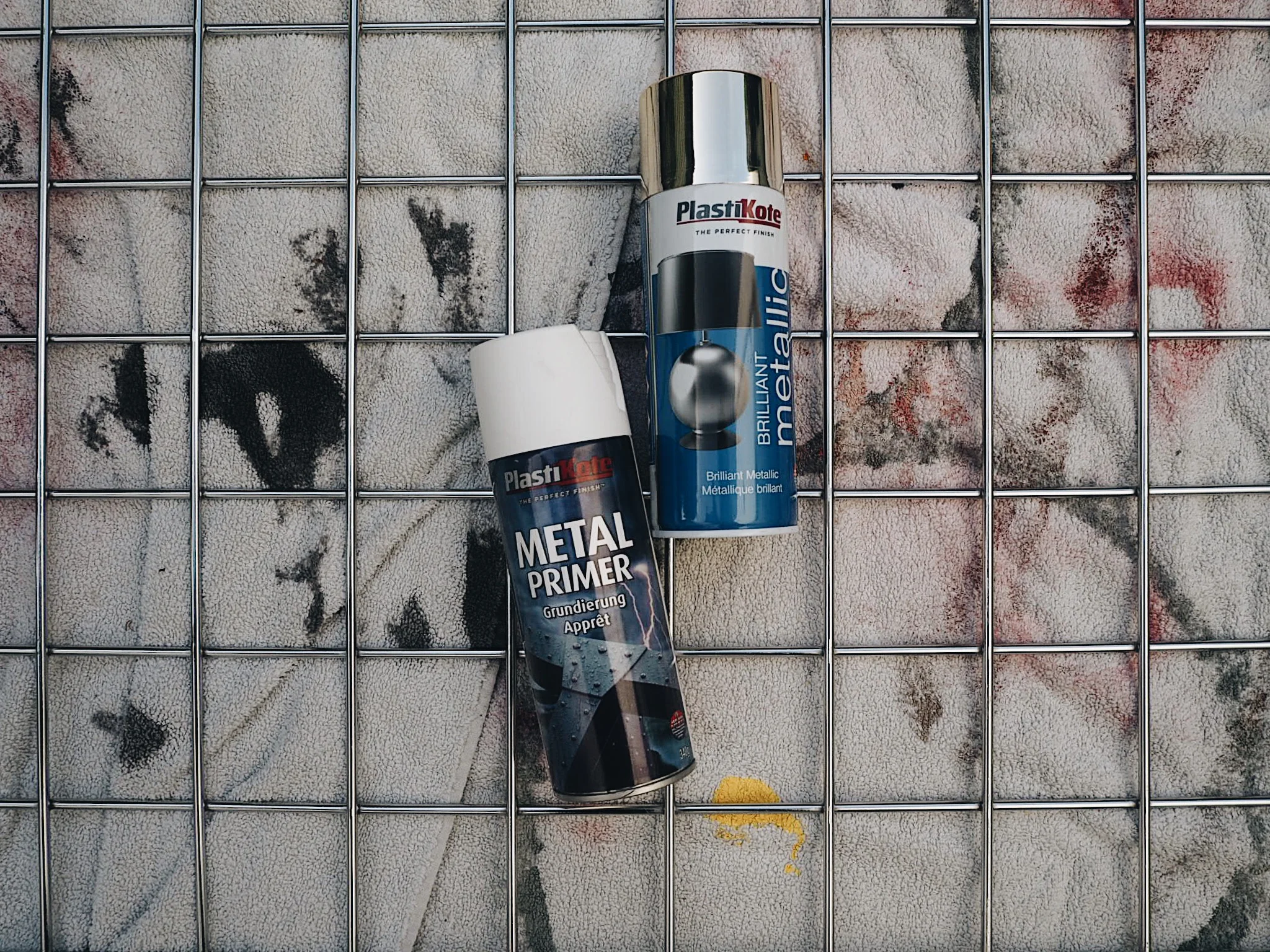 One I had my grid wall panel, it was time to change it from chrome to a shiny gold! For this I used a metal primer and brilliant metallic spray paint from Mano Mano (who by the way are super supportive of female and novice DIY-ers - unlike some other DIY companies that I won't mention.)
