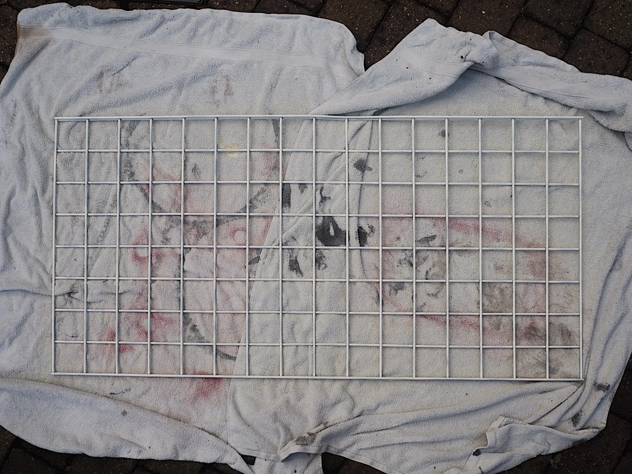 I left this without touching it for a good few to dry thoroughly so that it would not be tacky when turned over and coated on the other side. I then gave the second side of the grid wall panel a full coating, making sure that none of the side areas of the mesh were missed.