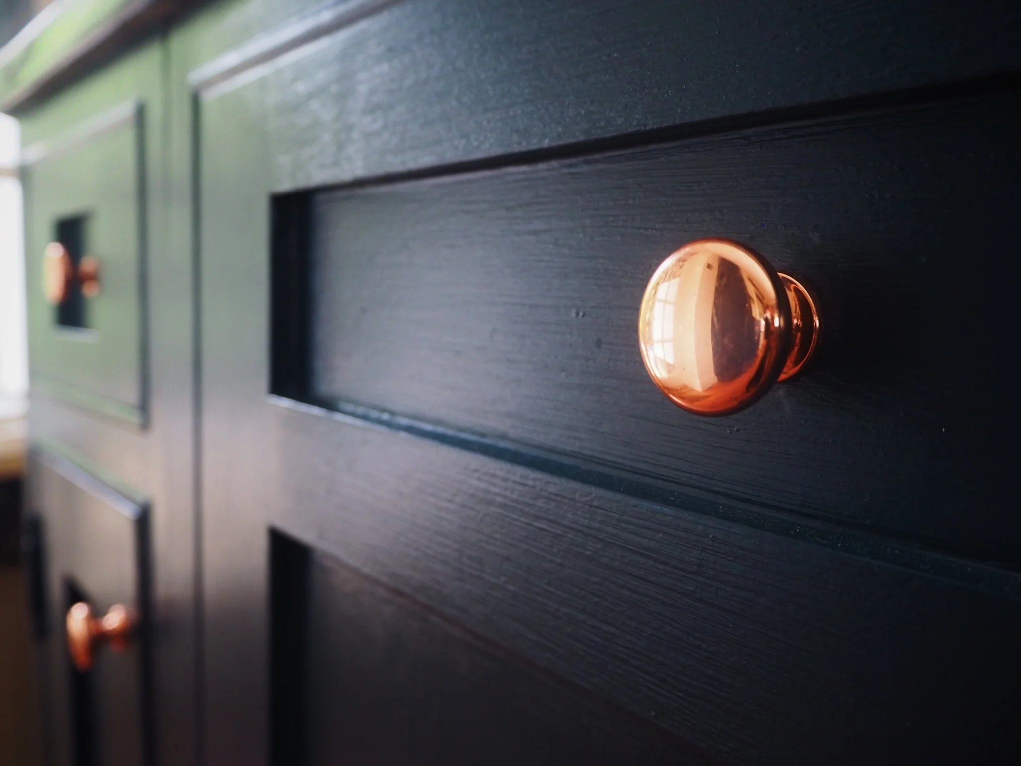 The ultimate finishing touch is to replace the handles. These copper pulls are from All Handles And Pulls. Also check out Buster + Punch for beautiful kitchen hardware.