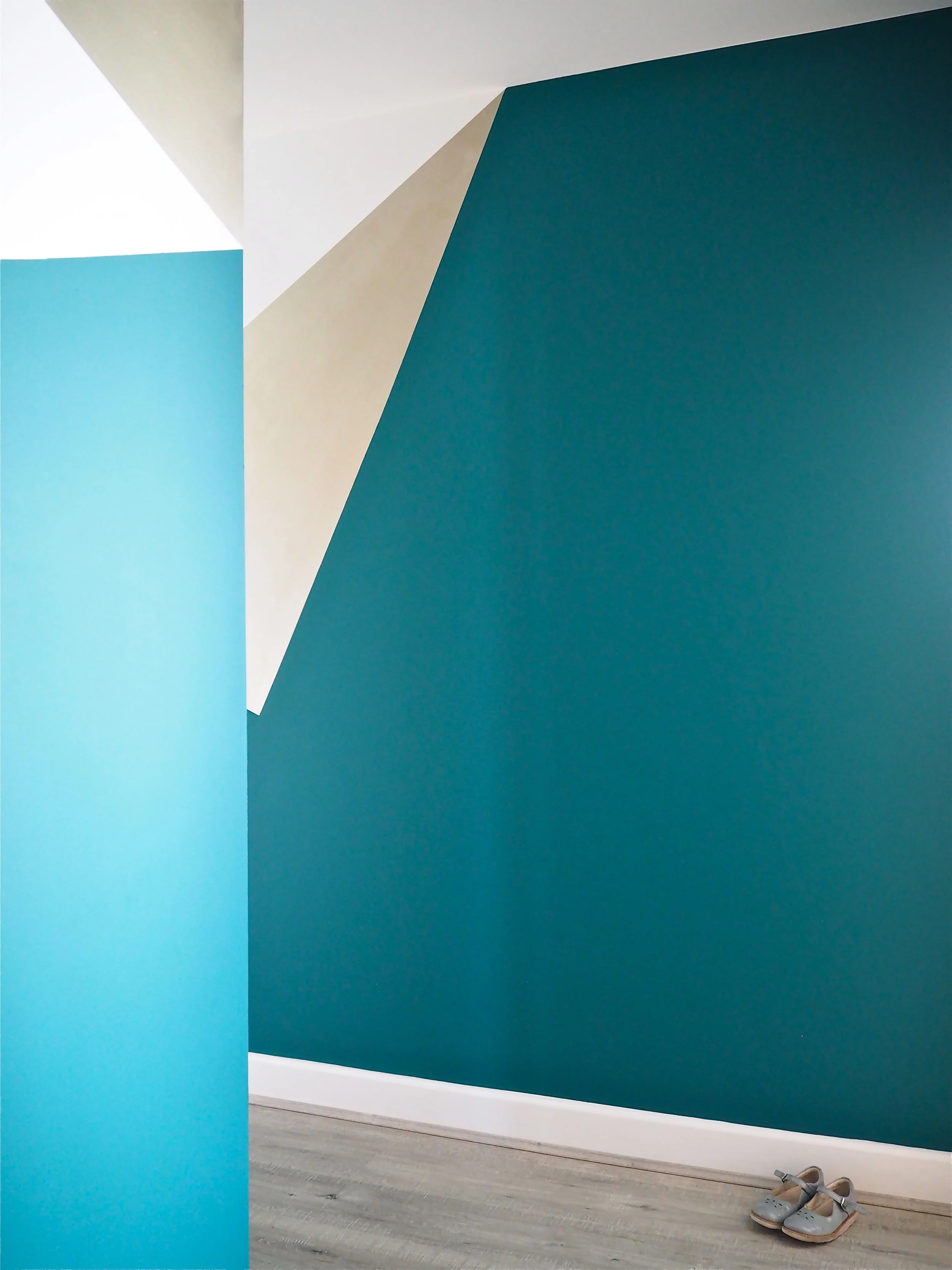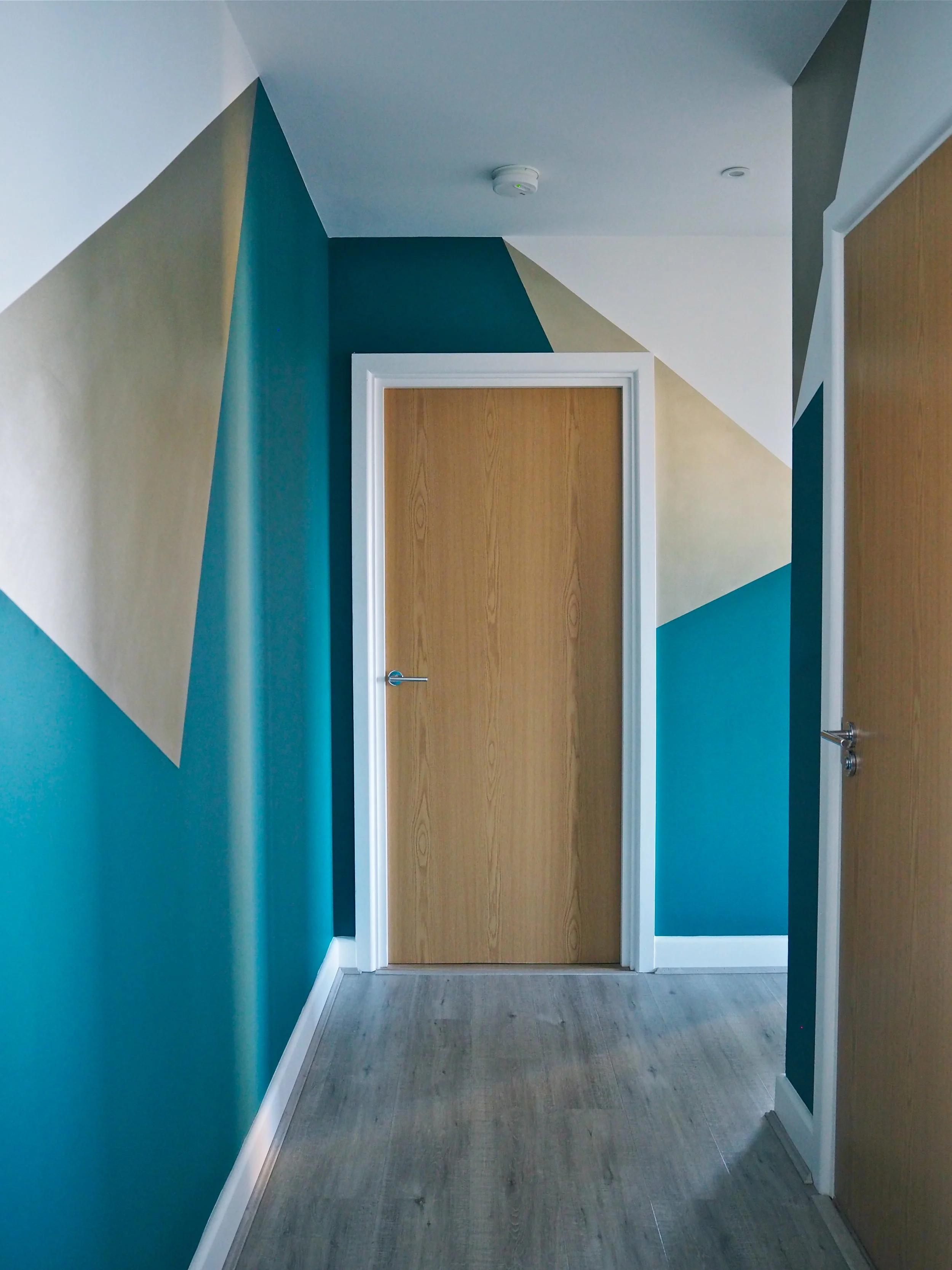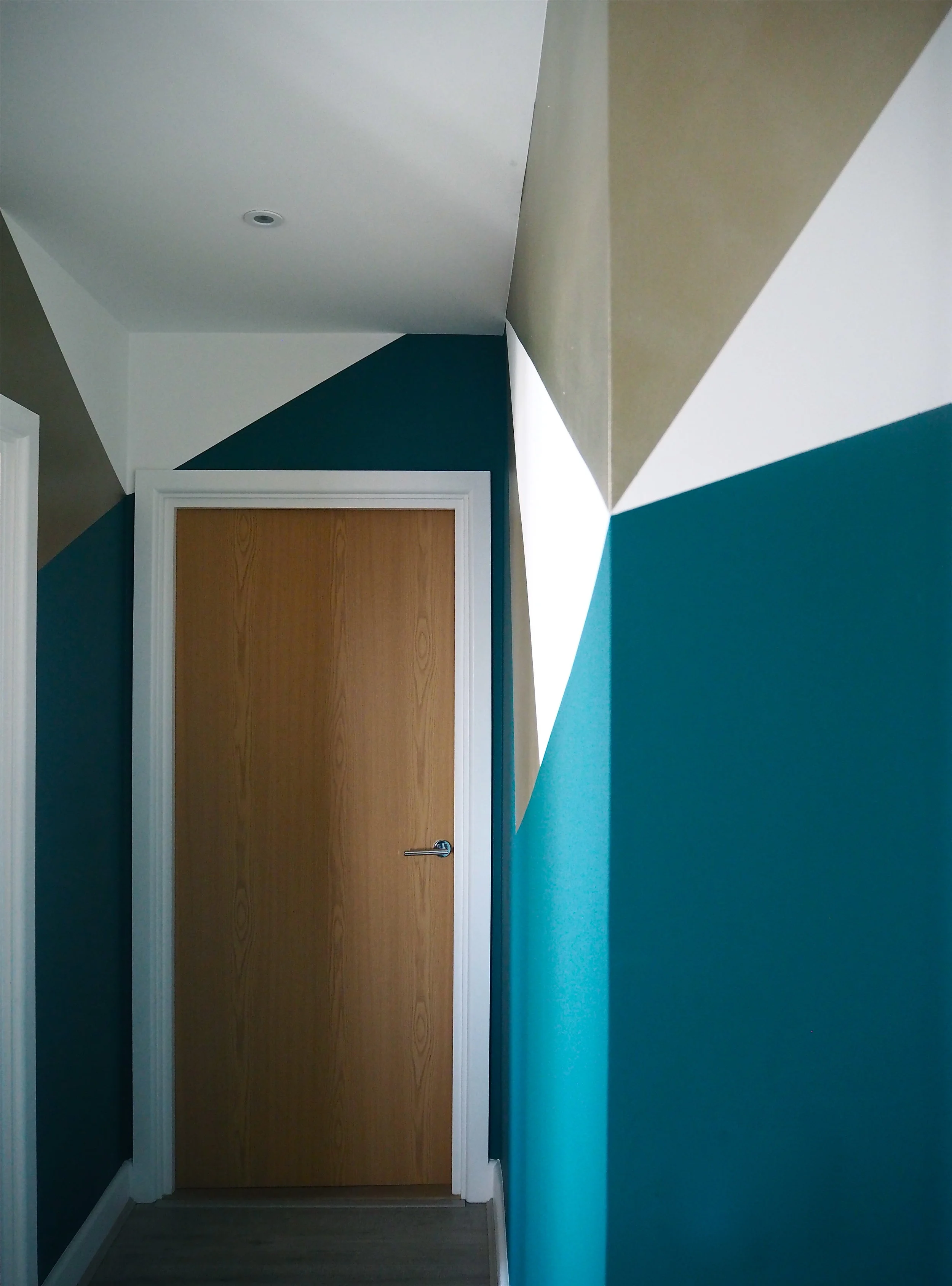 Creating A Gold & Teal Geometric Paint Effect In A Hallway
