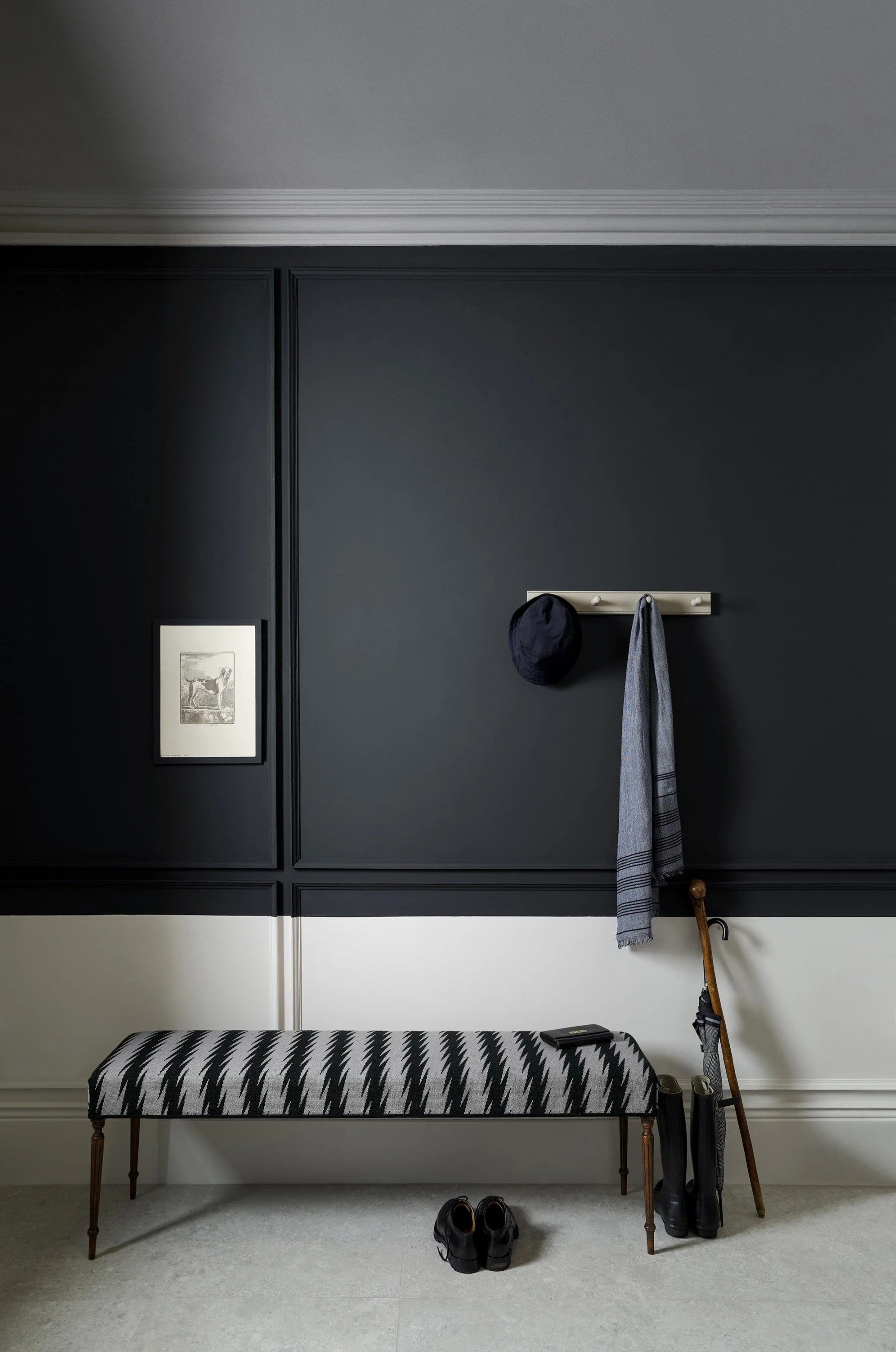 It is very popular to have a monochrome look in your hallway right now, as pictured above. Walls should be white but all the woodwork -including the stairs themselves - are painted black. It’s a modern spin for a traditional hallway that turns it into a contemporary and chic space, which also feels quite timeless. When it comes to monochrome, I am loving the move towards white walls and black ceilings, as seen here in the most recent project by Emilie Fournet Interiors:
