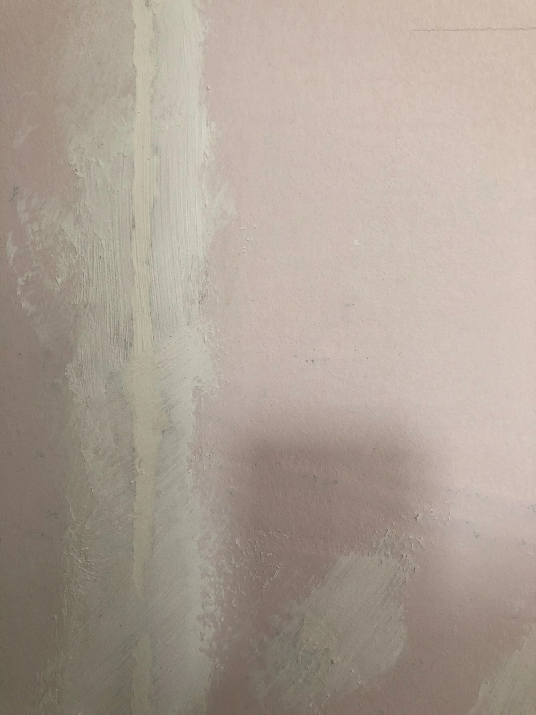 Areas of old damaged paint filled in with Polycell Finishing Skim