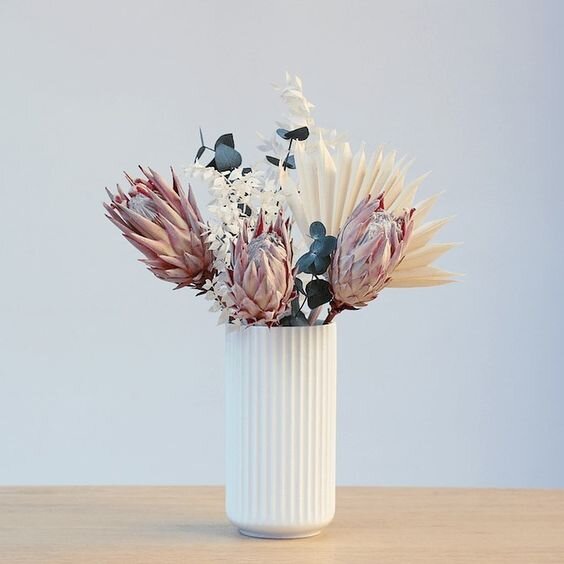 Shida have worked really hard to have a big Instagram presence and make themselves known as one of the leading suppliers of preserved flowers in the UK. Shida’s range is slightly more exotic and often features dried Proteas alongside palm spears and Eucalyptus. They also lean to a more natural colour palette of greens, browns and reds as opposed to the vivid pinks and other dyed colourways.
