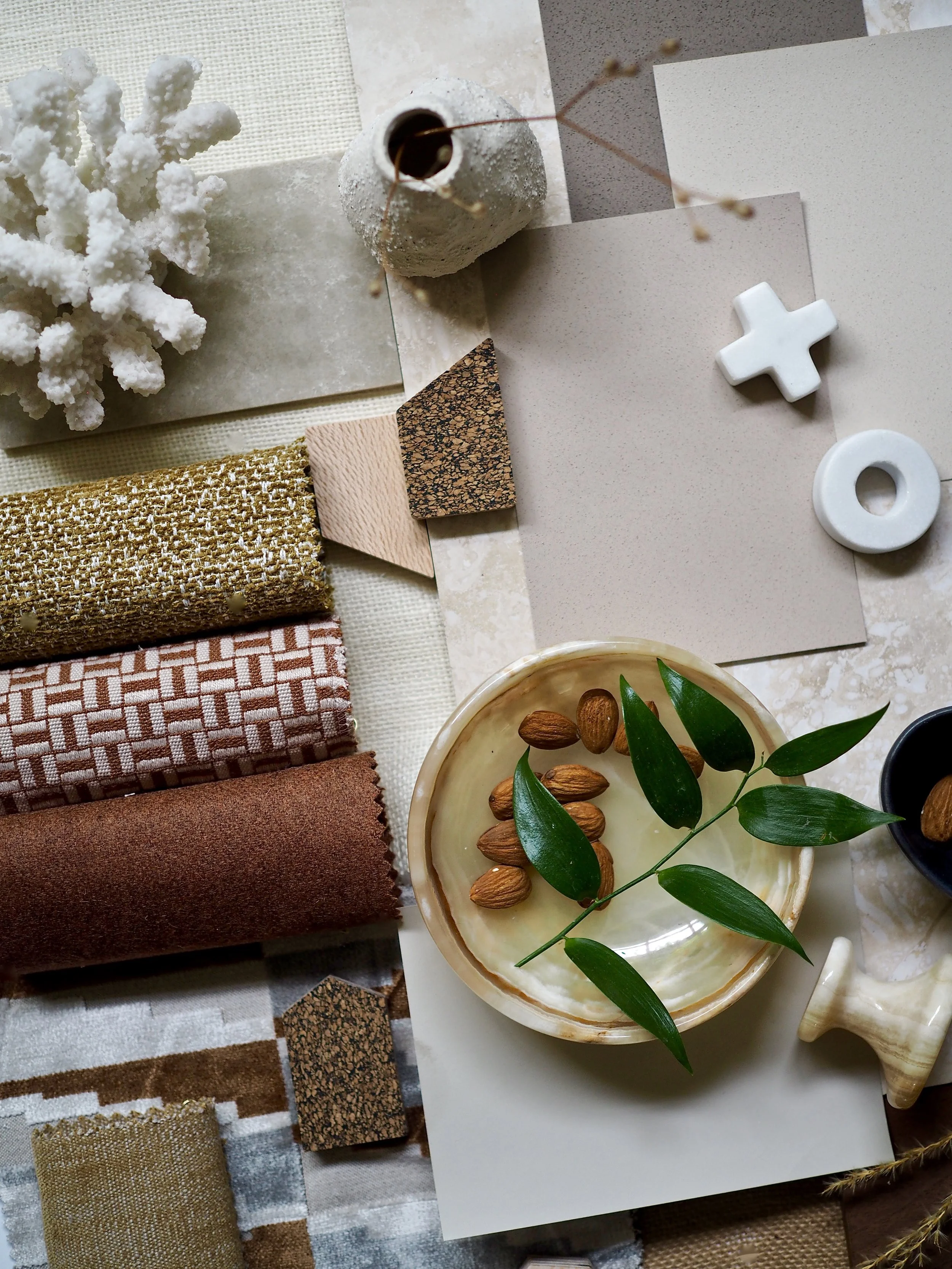 Everything that you want to go into the room! This includes paint, wallpaper, cut-outs of furniture or home accessories you may wish to add in, upholstery fabrics, soft furnishing fabrics, hardware, tiles, flooring, cabinet colour chips, decorative touches, and anything that has inspired you with the room design. Try and obtain as many samples as possible when planning your room - what you think you have your heart set on might change when you see it as part of your mood board, and you might end up going with your initial ‘second choice’.
