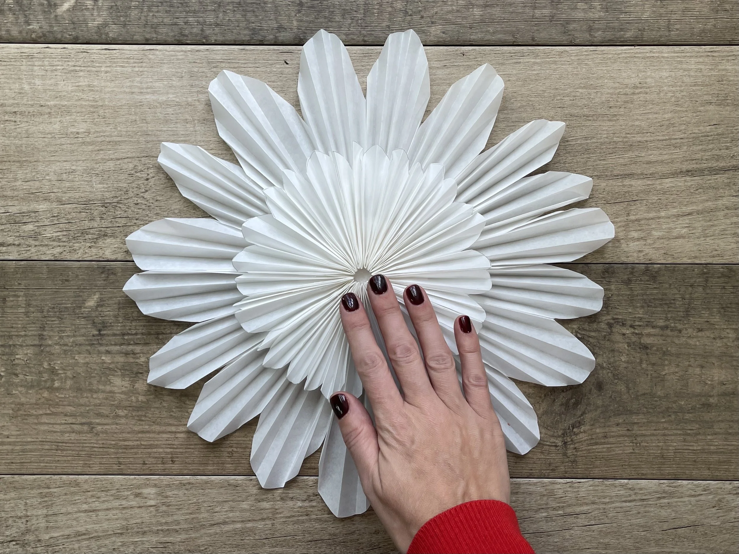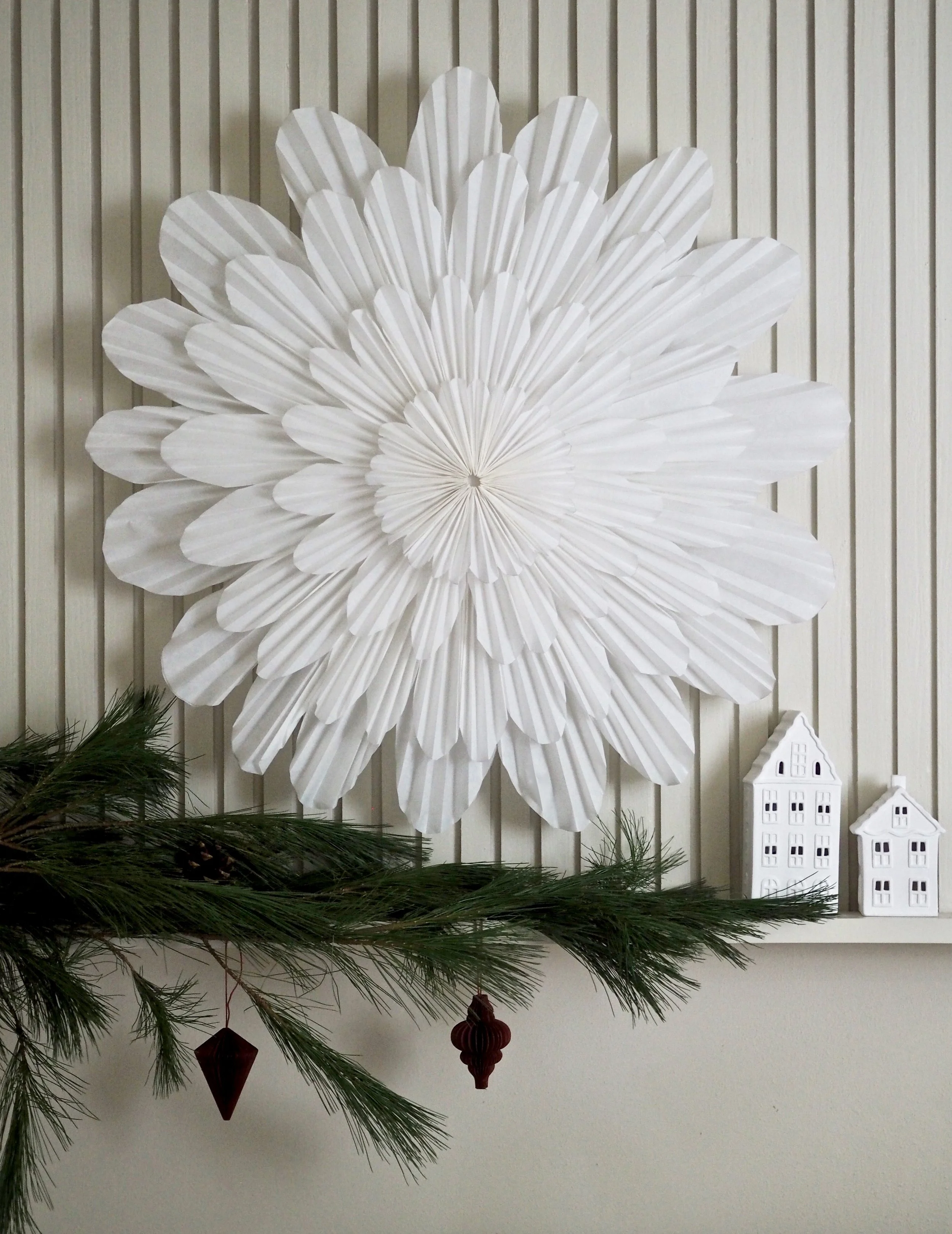 These extra-large Nordic paper decorations that are all over Instagram are really beautiful, but they are quite expensive to purchase pre-made. I wanted to buy one from ARKET last Christmas, yet the £70 price tag was out of my price range. This Christmas, I was determined to make my own version, and after a bit of research, I discovered that I could do this using white baking paper (otherwise known as parchment paper).