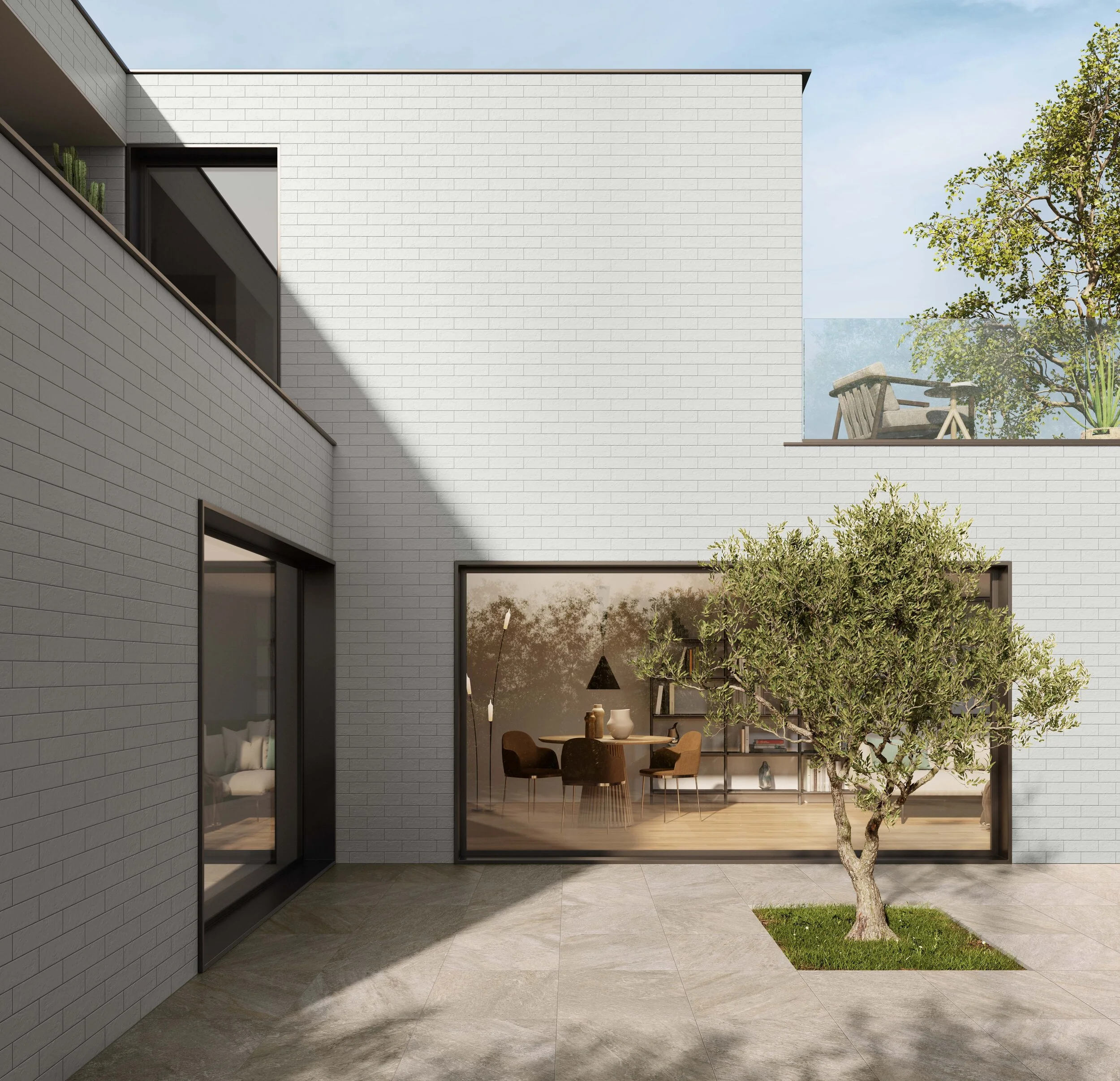 While metro tiles are often considered in relation for use in a bathroom or kitchen, they can be applied to exterior surfaces to create scale and proportion and complement the natural setting. Casalgrande Padana’s Muretto (brick-effect) or Petra (stone-effect) collections can be used outside, as the technical strength of the porcelain is able to abstain from heavy frosts or high temperatures. When used as facades, the porcelain offers thermal and acoustic insulation, as well as Casalgrande Padana’s Bio Self Cleaning technology.