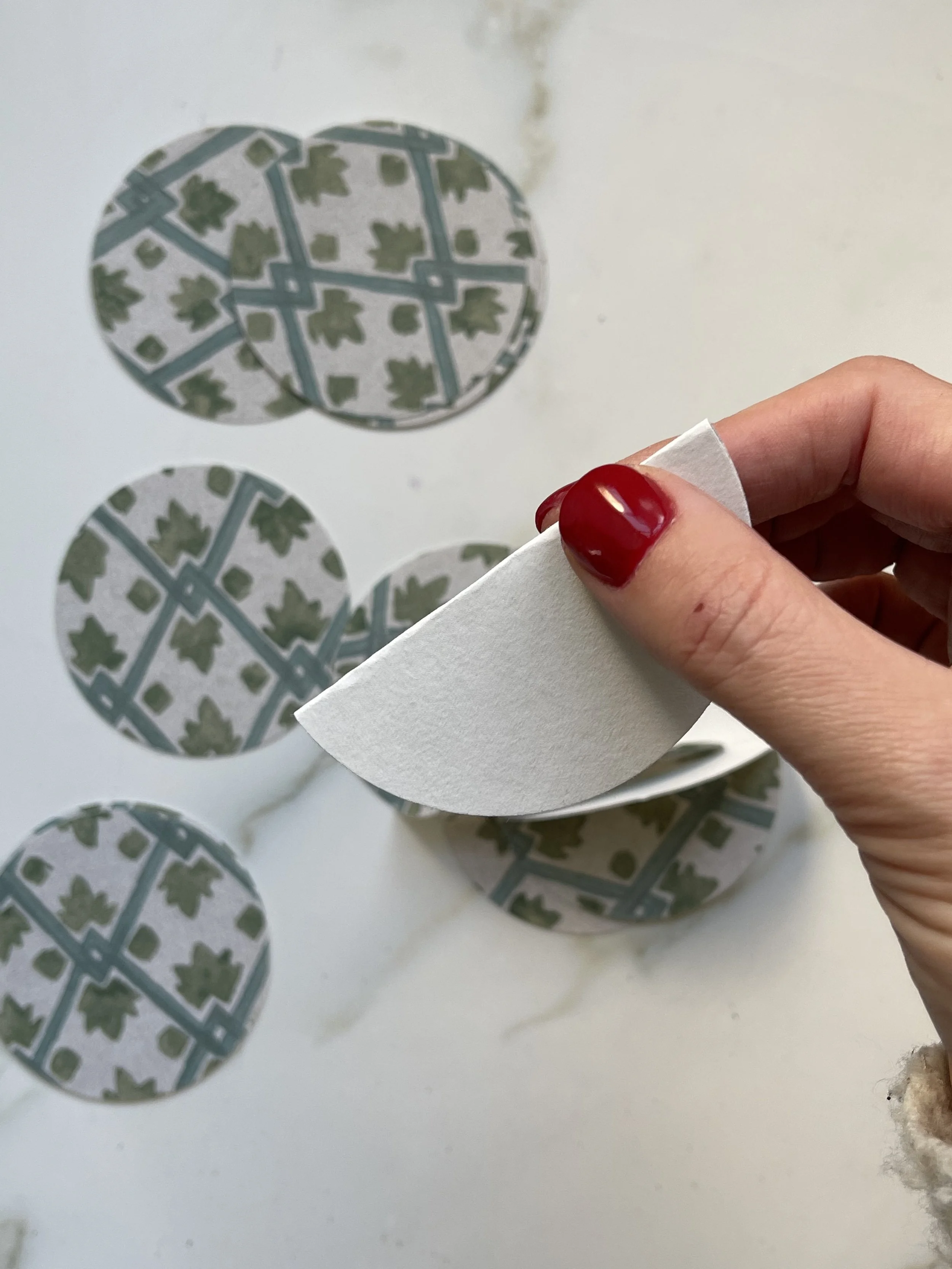 Simply use your craft punch to punch out a number of perfectly-round wallpaper circles. I found that for a good bauble, you’ll need at least 10-12 circles. You can use the same wallpaper design or mix up your patterns. I found the baubles looked particularly effective using the same pattern for the bauble but mixing up the pattern in different colourways.