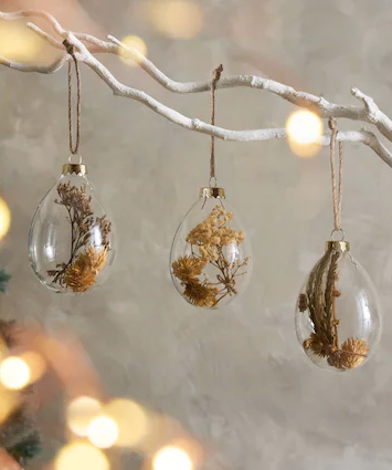 3 Pack Collection Luxe Dried Floral Christmas Baubles: