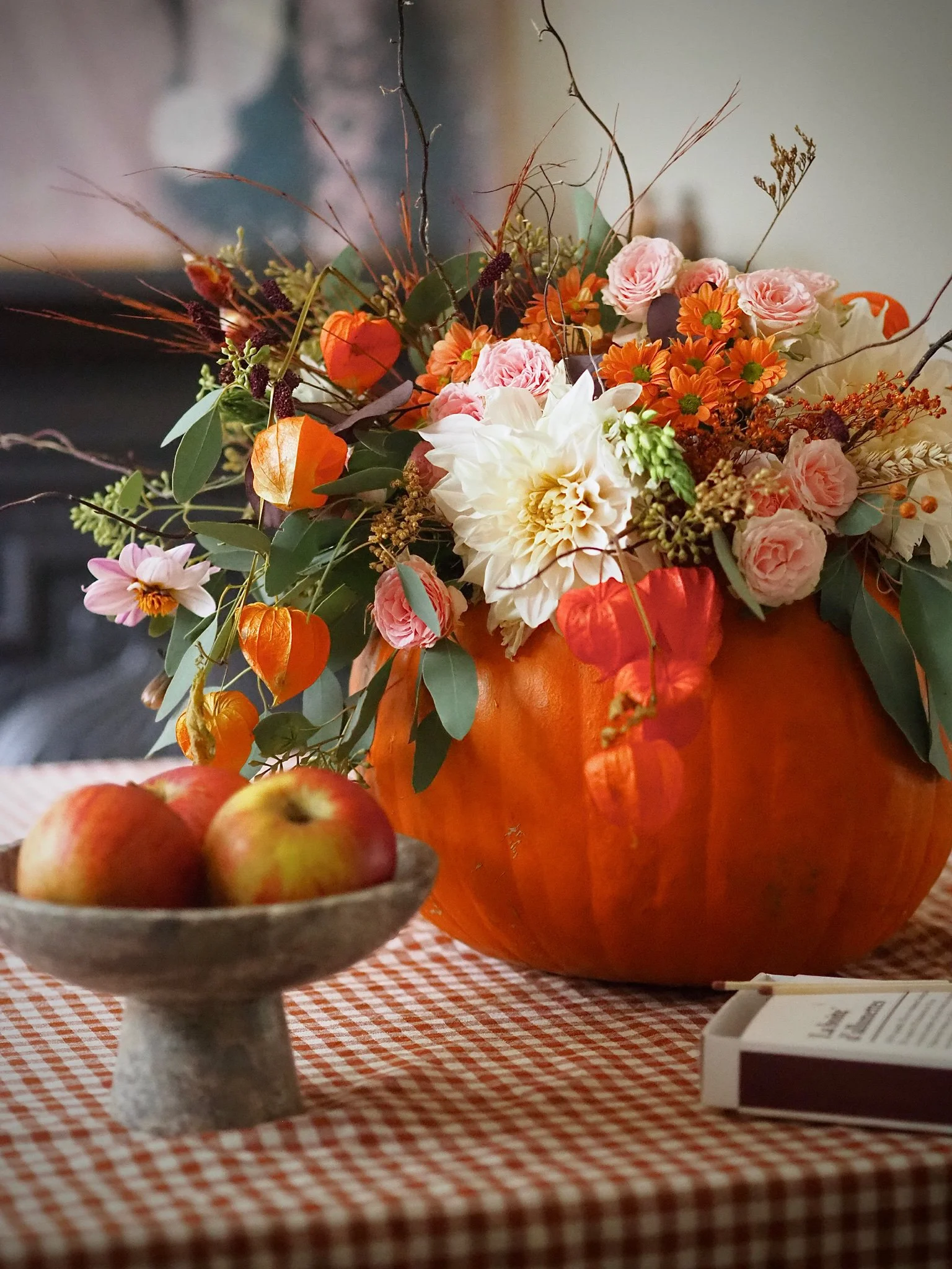 I’ve never really been the sort of person who loves gothic decor - I’m definitely someone who prefers things to be pretty! So, for Halloween this year, I decided to make a floral pumpkin display bursting full of autumnal blooms! These floral pumpkins make a great table centrepiece, while they could also work well displayed in a porch or on top of the fireplace mantel.