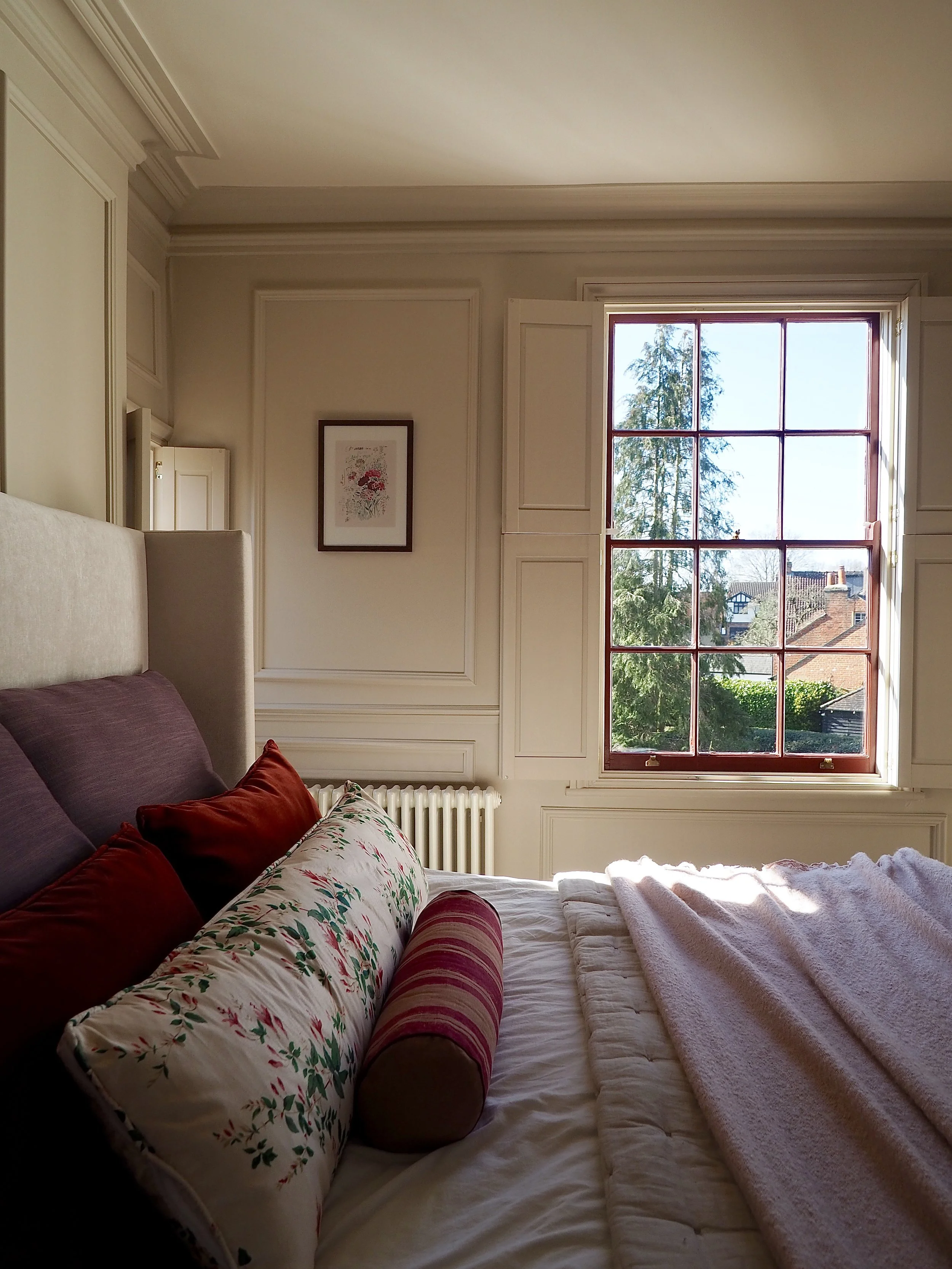 If you want to bring in colour but cannot commit to painting a darker hue on the walls, try paining just the woodwork in a deeper hue, or even just the bottom half of the wall for a dado effect. This adds colour to your space but as it is paired with a neutral, it maintains balance.