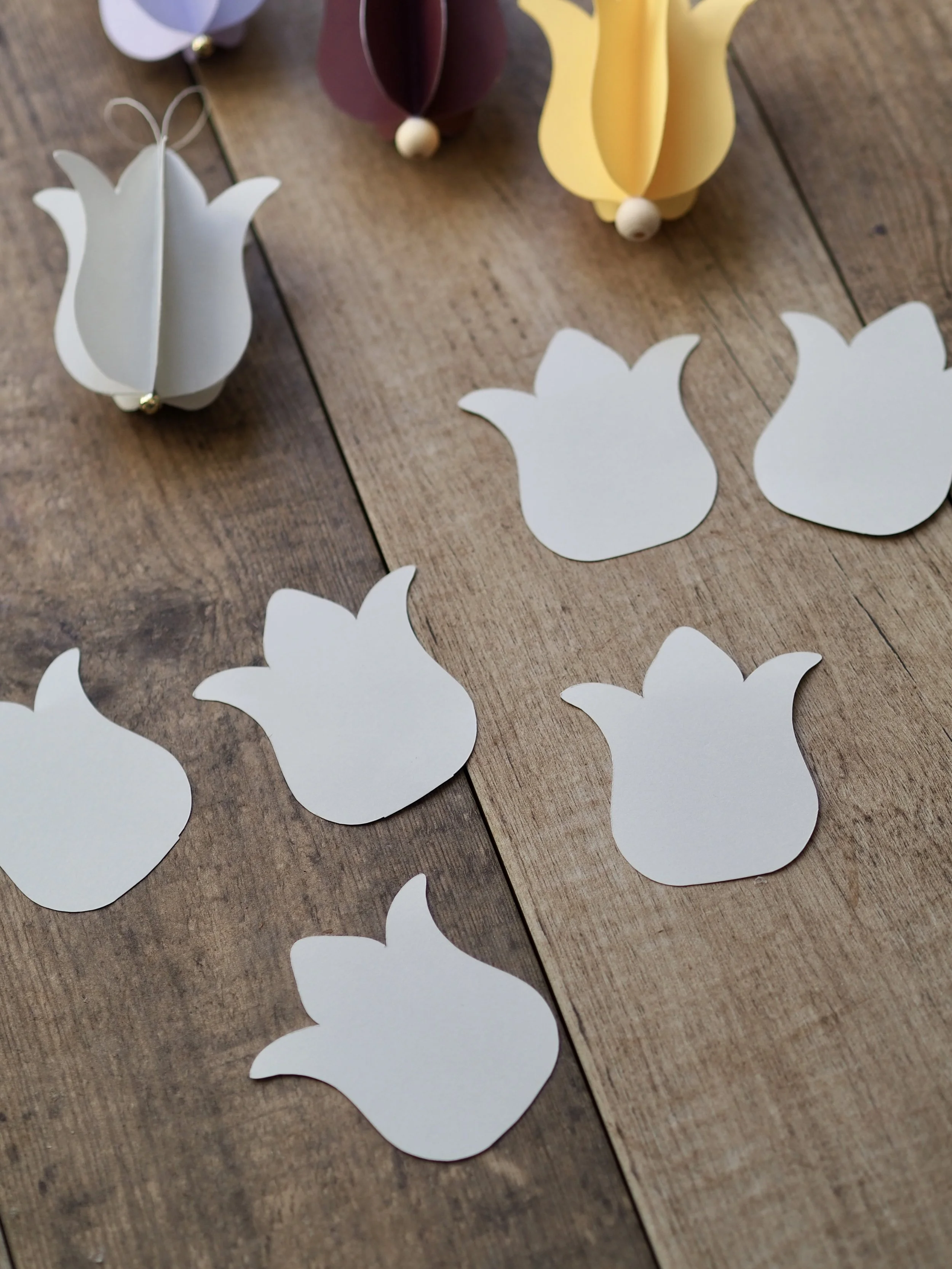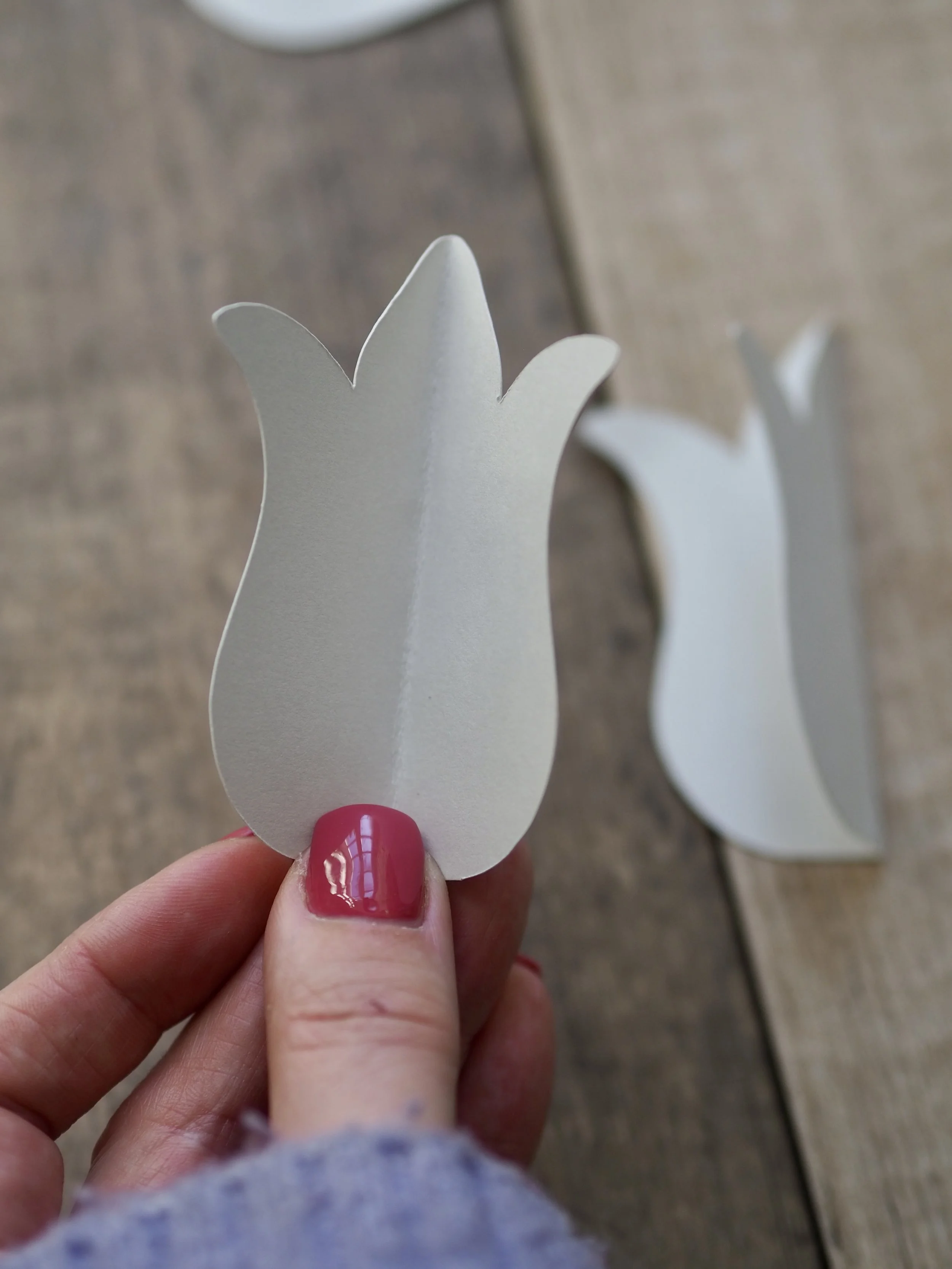 Firstly, you’ll need to print or cut out a template of the tulip head shape onto thicker card. Here is the template that I used: