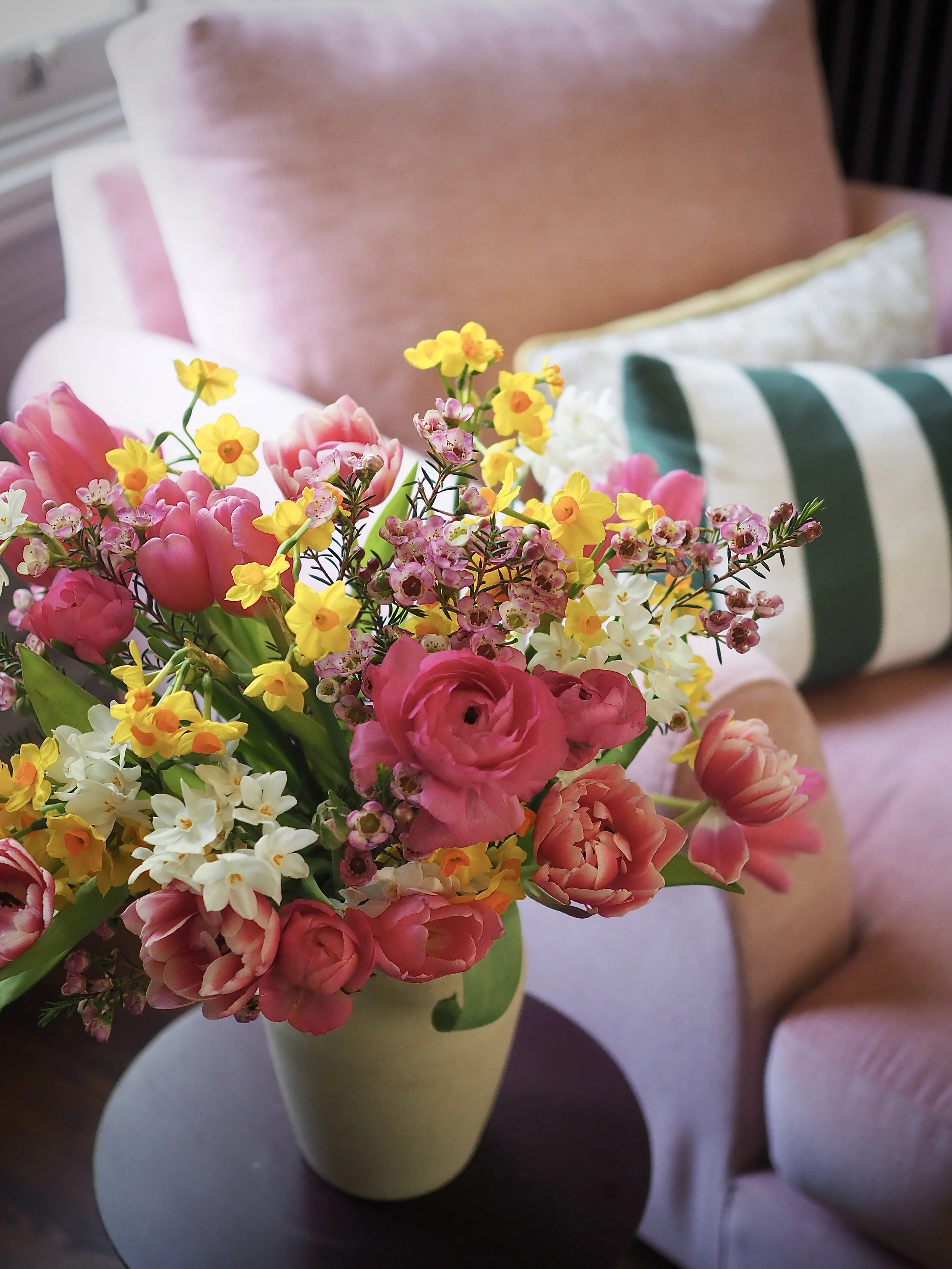 There's something genuinely lovely about filling your home with flowers straight from the garden or a trip to the market. I would say that spring is probably the best time for it, as everything bursting into life and you've got access to some of the most beautiful blooms of the year! A simple bunch on the kitchen table, a generous arrangement in the hallway - even a small jam jar of crocuses on the windowsill makes a difference!